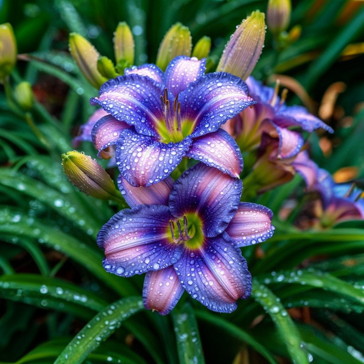 Защита от вредителей и болезней: Лилейники относительно устойчивы к вредителям и болезням, но иногда могут поражаться слизнями, тлей или ржавчиной. При необходимости применяют соответствующие меры защиты.